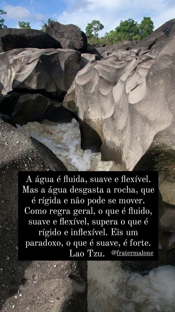A água é fluida, suave e flexível. Mas a água desgasta a rocha, que é rígida e não pode se mover. Como regra geral, o que é fluido, suave e flexível, supera o que é rígido e inflexível. Eis um paradoxo, o que é suave, é forte.